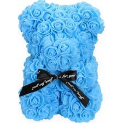 Αρκουδάκι απο τεχνητά τριαντάφυλλα σε μπλε χρώμα