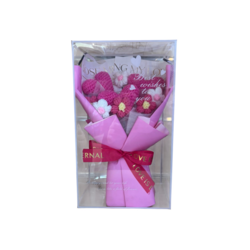 Κουτί δώρου με ανθοδέσμη σε ροζ χρώμα