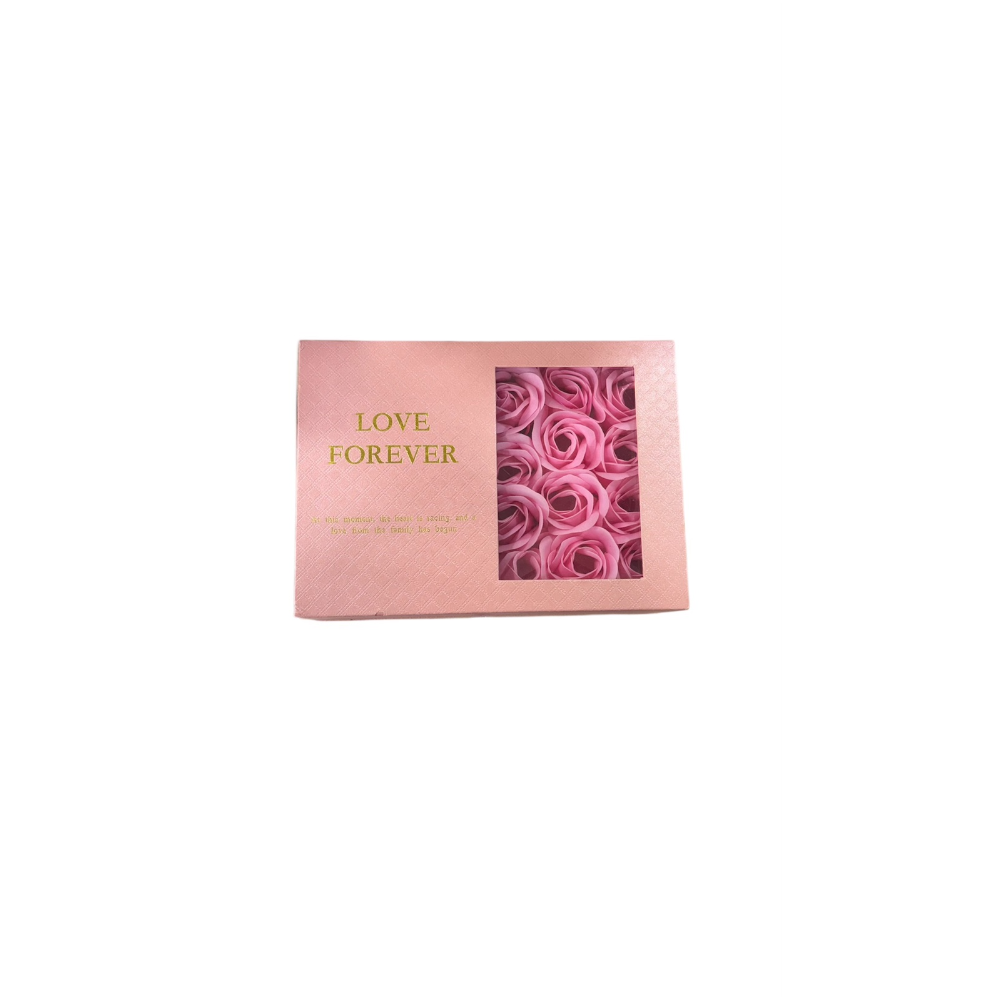 Κουτί δώρου με τεχνητά τριαντάφυλλα σε ροζ χρώμα