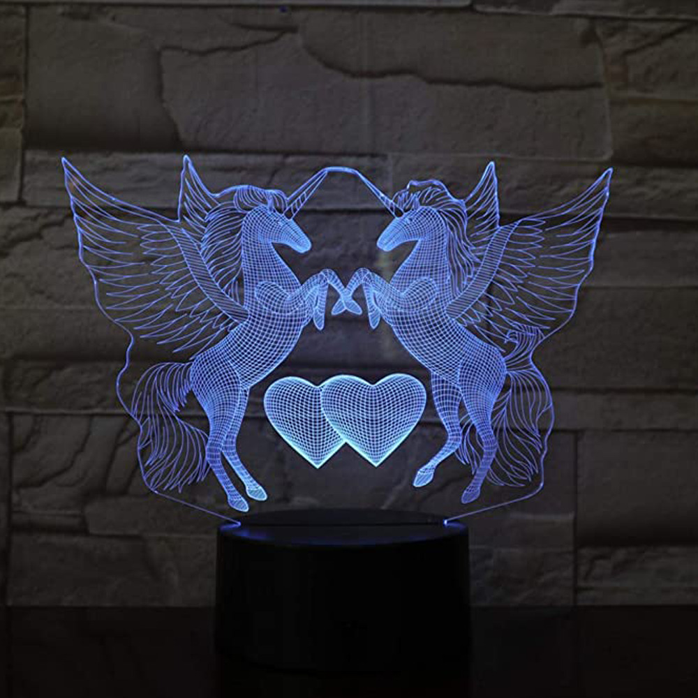 Μονόκεροι Με Καρδούλα Διακοσμητικό Φωτιστικό RGB Illusion-3D Creative Visualization Lamp USB ΟΕΜ